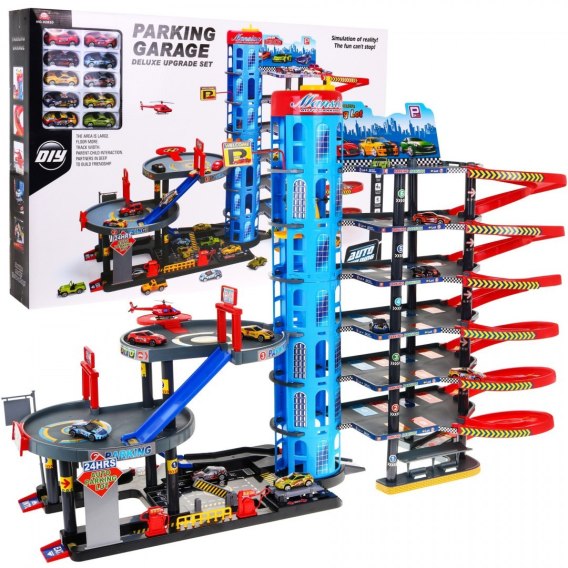 7-poziomowy Parking dla dzieci 3+ Helikopter + 10 Autek + Winda + Zjeżdżalnie