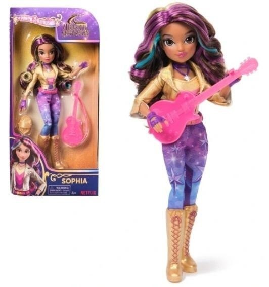 Odtwórz magię Akademii Jednorożców dzięki modnym lalkom z serii Moc przyjaźni. Zainspirowane serialem animowanym NETFLIX i ulubioną przez dzieci serią książek o przyjaźni, te 24 cm lalki dla dziewczynek ożywią bohaterów znanych z ekranu. Bardzo szczegółowa od stóp do głów, buntownicza i żądna przygód osobowość Sophii przejawia się w jej tęczowych włosach i stroju jeźdźca: zupełnie nowych spodniach z oznaczeniami mocy Magii Światła, złotej kurtce i tęczowym topie, sznurowanych butach, rękawiczkach, pasku, naszyjniku. Dzięki 9 punktom zgięcia możesz ustawiać Sophię i udawać, że popisuje się swoimi talentami na gitarze, a następnie wyruszyć na przygodę z Gwiazdą (jednorożec sprzedawany oddzielnie). Przyjaźnie i magiczne więzi między uczniami Akademii Jednorożców i ich jednorożcami pobudzą niekończącą się wyobraźnię. Aby uzyskać więcej sposobów na poznanie Akademii Jednorożców z ulubionymi postaciami, poszukaj innych lalek i ich jednorożców (zabawki sprzedawane osobno) i poszerz swój świat. Zabawki z serii Akademia Jednorożców to wspaniałe prezenty świąteczne lub okolicznościowe dla dzieci, które lubią zabawkowe jednorożce i konie, lalki i akcesoria, domki dla lalek, przedmioty kolekcjonerskie, pluszaki i nie tylko. Twórz zaczarowane przygody z lalką Sophią z serii Akademia Jednorożca Moc Przyjaźni.