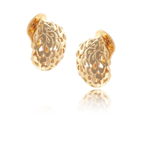 Pozłacane ażurowe klipsy w kształcie kropli. Wymiary klipsa ok. 2,2 cm/ 2 cm.