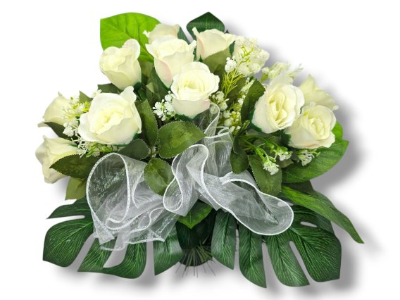 ➡️BUKIET WKŁAD DO WAZONU KWIATY NA CMENTARZ GRÓB POMNIK BIAŁE RÓŻE
