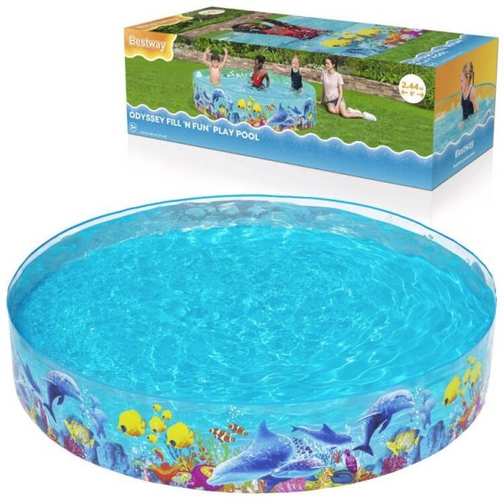Klasyczny basen rozporowy firmy Bestway jest fantastyczną propozycją na upalny letni dzień.Ścianki basenu z brodzikiem dla dzieci wykonane są ze sztywnego, mocnego materiału PVC, który rozpręża się pod naporem wody. Dno jest trwale przymocowane, wykonane z wytrzymałego winylu. Przeźroczyste ścianki plastikowego brodzika ogrodowego z ciekawą grafiką barwnej rafy koralowej stworzą niesamowity efekt wizualny i z pewnością przypadną do gustu Pociechom.