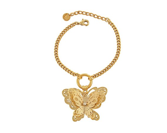 Pozłacana bransoletka z ażurowym, trójwymiarowym motylem.