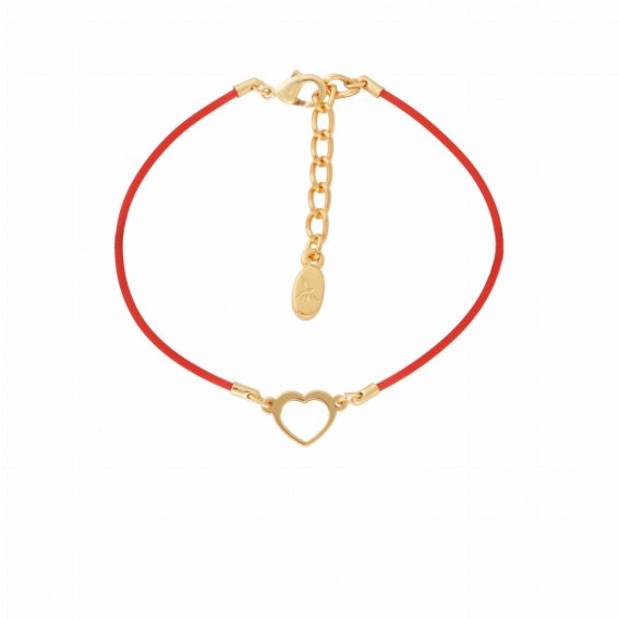 Bransoletka na czerwonej gumce z zawieszką - wycięte serce to wyjatkowy prezent dla ukochanej osoby.Długość bransoletki 15cm plus przedłużka 4cm.