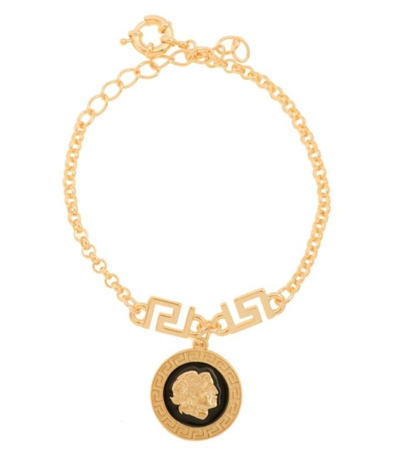 Pozłacana bransoletki na nogę to doskonałe uzupełnienie stylizacji na lato. Stylowa bransoletka z ręcznie emaliowaną monetką w kolorze czarnym. Długość 26 cm + 5 cm przedłużki.
