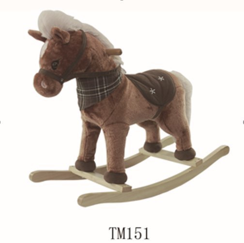 Śliczny bujany konik dla dzieci od 24-go miesiąca życia. Wykonany został z bardzo miłego w dotyku materiału. Na szyi konika znajduje się zdejmowana apaszka. Konik posiada wygodne siedzisko, bezpieczne drewniane płozy oraz rączki do trzymania. Na prawym i lewym uchu konia znajdują się czujniki, które uruchamiają odgłosy rżenia i galopu. Zabawka zasilana jest bateriami typu 3 x LR44, baterie znajdują się w zestawie.
