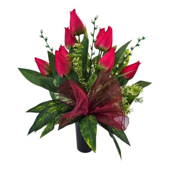 Bukiet flakon wiosenny stroik na cmentarz kompozycja kwiatowa tulipany