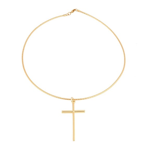 Choker to idealny pomysł na prezent oraz uzupełnienie każdej stylizacji. Naszyjnik o długości 41cm z krzyżykiem o okrągłym przekroju dł.5,5cm szer. 2,5 cm. Naszyjnik pozłacany.
