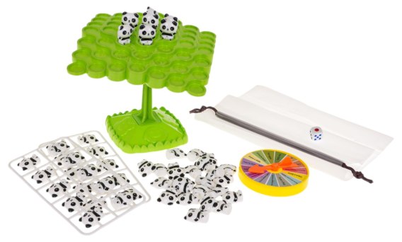 Zręcznościowa gra Pandy dla dzieci od 3-go roku życia. Gra składa się z podstawki, słupka, planszy, figurek pand, kostki i koła z zadaniami. Zadaniem graczy jest ułożenie lub zdjęcie z planszy tylu figurek pand, ile wskaże rzut kostką i wykonanie zadań wskazanych na kole. Gracz, który jako pierwszy spowoduje zawalenie się konstrukcji, przegrywa. Gra poprawia pamięć, uczy logicznego myślenia, uczy cierpliwości.