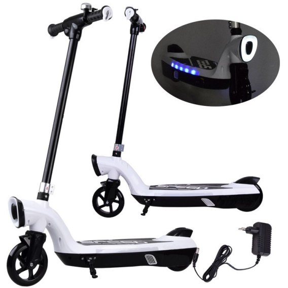 Prędkość jaką można osiągnąć na hulajnodze to ok 9-11km/h. Na hulajnodze można jeździć normalnie odpychając się nogą, ale jak się człowiek np. zmęczy wówczas wystarczy nacisnąć spust i sunąć przed siebie z wielką przyjemnością. Hulajnoga z podnóżkiem i ledowym oświetleniem zapewni mnóstwo wesołej zabawy.