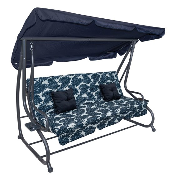 Huśtawka Ogrodowa Siedzisko Textylina 2x1 Wzór Liście Granatowa
