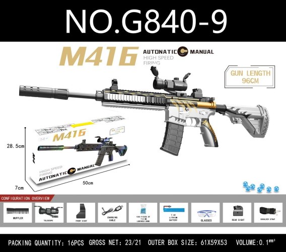 Karabin M416 Szary na Kulki Wodne + Akcesoria