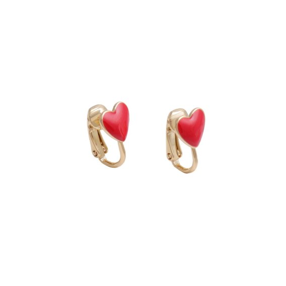 Pozłacane klipsy serduszka z czerwoną emalią.Długość klipsa 1,5 cm. Szerokość serduszka ok 0,9 cm