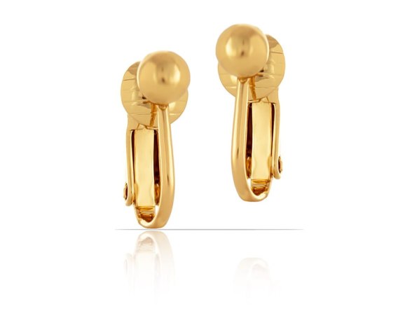 Pozłacane klipsy, zakończone kulką, to doskonałe rozwiązanie dla kobiet, które nie noszą kolczyków.