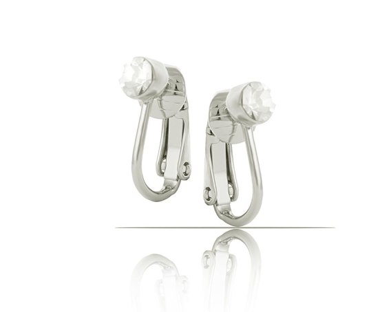 Posrebrzane klipsy z kryształkiem Preciosa.