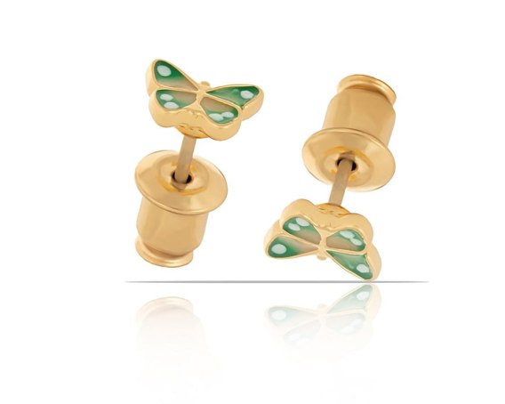 Kolczyki dla dzieci, zielono - żółte motylki (P15/KDS/09/4AU)
