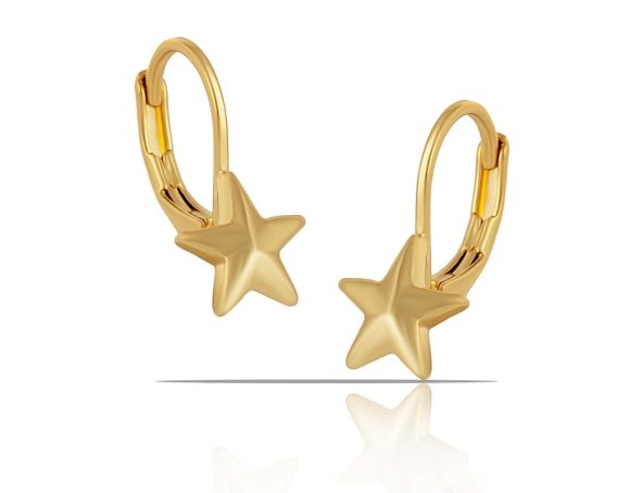 Pozłacane, małe kolczyki z gwiazdkami na zapięciu angielskim to delikatna, urocza dziecięca biżuteria.