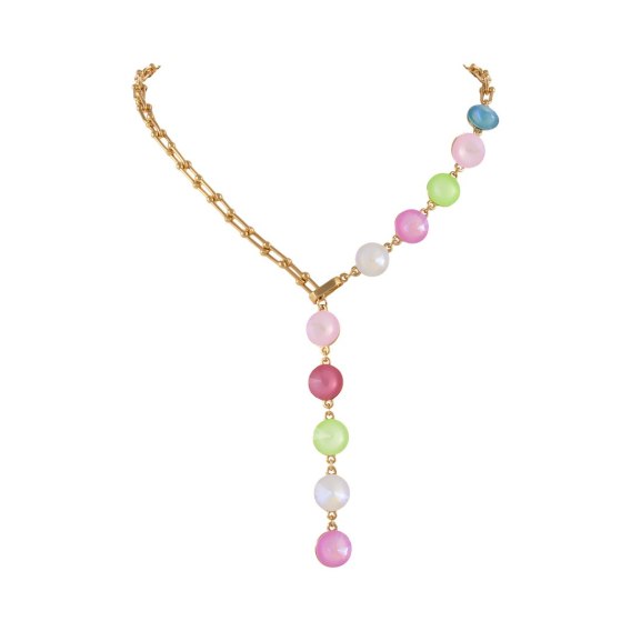 Stylowa krawatka ozdobiona okrągłymi kryształami, uzupełniona łańcuchem, który nadaje całości nowoczesnego i wyrafinowanego charakteru. Smukła, wydłużona forma pięknie podkreśla dekolt i optycznie wysmukla szyję. Połyskujące kryształy odbijają światło, dodając stylizacji elegancji i blasku.
