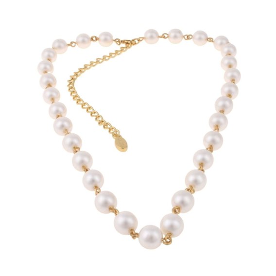 Krótki naszyjnik z perełkami syntetycznymi o długości 38 cm + 10 cm przedłużka.
