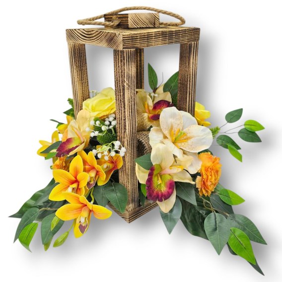 💚Dodaj wyjątkowy akcent do miejsca pamięci dzięki tej pięknej kompozycji w drewnianym lampionie. Stroik zachwyca żywymi kolorami i starannym wykonaniem - symbolizując pamięć oraz szacunek.