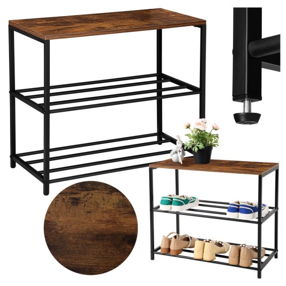 Stella to lekki i praktyczny stojak na buty, wykonany ze stali malowanej proszkowo,  najwyższej jakości.  Rustykalna płyta dodaje modelowi autentycznego i naturalnego wyglądu, nadając Twojej przestrzeni unikalnego wyglądu.