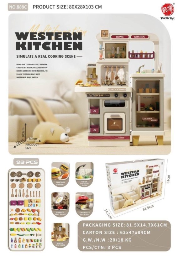 MEGA Kuchnia z Funkcją Świateł, Dźwięku i Pary + Akcesoria Beżowa