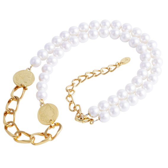 Naszyjnik perły z monetami (C22/MEN/31AU)