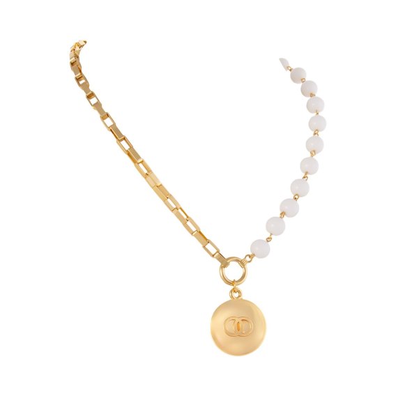 Naszyjnik z agatów i łańcucha z zawieszką z kółeczkami w środku (C25/KOR/103AU)