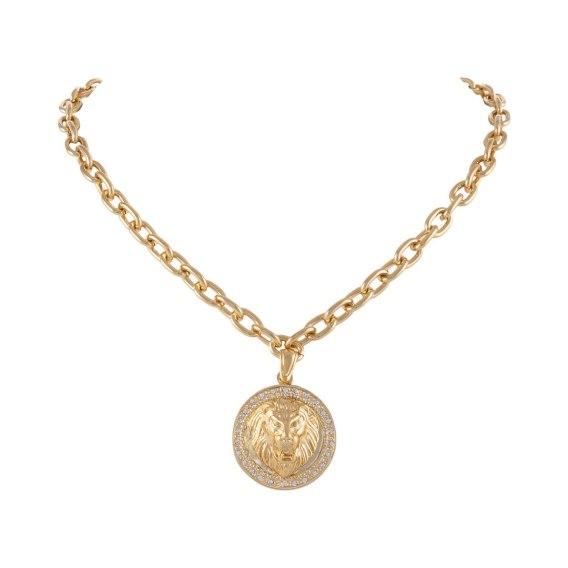 Naszyjnik z okrągłą zawieszką z głową lwa, zdobioną kryształkami Preciosa (C25/JES/141AU)