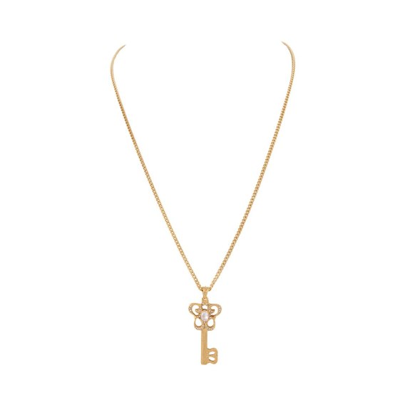 Naszyjnik z zawieszką w kształcie klucza, z białymi kryształkami Preciosa (C25/JES/157AU)