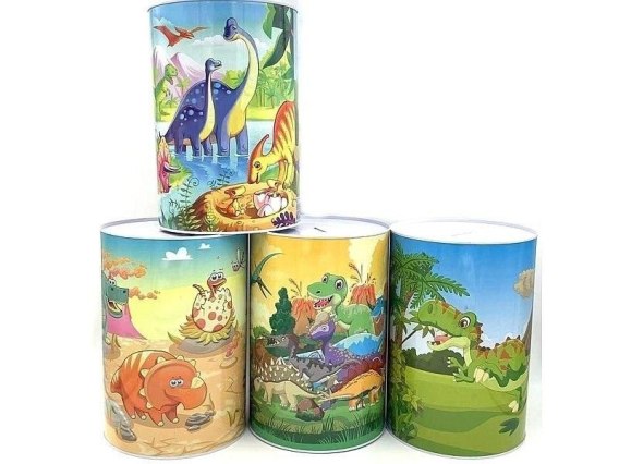 Skarbonka puszka metalowa dinozaury mix