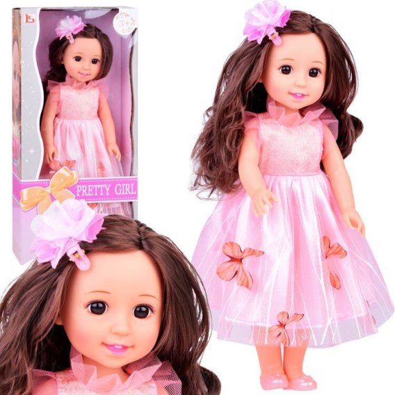 Śliczna Lalka 36 cm w różowej balowej sukni motylki długie włosy ZA5236