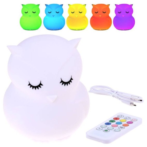 Sowa Silikonowa miękka lampka nocna led RBG + pilot ZA3295