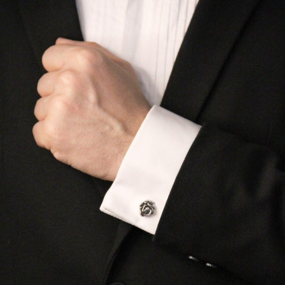 Spinki do koszuli Róża w kolorze czernionego srebra. Wymiary 2cm, wielkość róży ok1,5cm