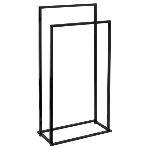 Gesi to wolnostojący praktyczny wieszak na ręczniki. Wykonany z najwyższej jakości stali malowanej proszkowo i wykończony na głęboki czarny kolor. Ma aż 2 ramiona na różnych wysokościach, co ułatwia zakładanie i ściąganie ręczników. Ramowa konstrukcja w kształcie litery U zapewnia szybsze i dokładniejsze suszenie ręczników oraz oszczędność miejsca. Stojak jest stabilny, a zarazem lekki. Bez problemu przeniesiemy go w wybrane miejsce. Podstawa stojaka zabezpieczona jest ochronnymi stopkami, które zapobiegają rysowaniu się podłogi. Jest doskonałym uzupełnieniem każdej łazienki. Oprócz walorów praktycznych stanowi ciekawą ozdobę pomieszczenia, wobec której nie można przejść obojętnie. Idealnie wkomponuje się we wnętrza w stylu loftowym czy industrialnym.