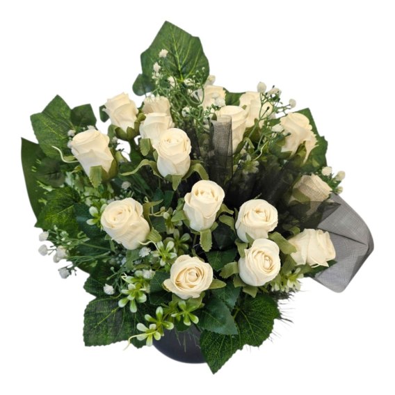 Stroik na cmentarz grób kompozycja kwiatowa na grób miska róże