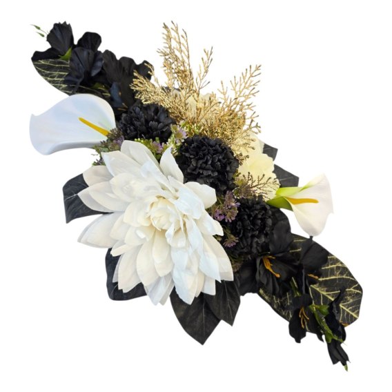 💚Stroik cechuje się unikalną kompozycją sztucznych kwiatów oraz innych dodatków. Starannie dobrane kwiaty są niezwykle realistyczne i naturalne, dodając wiązance autentyczności i podkreślając jej uroczysty charakter.