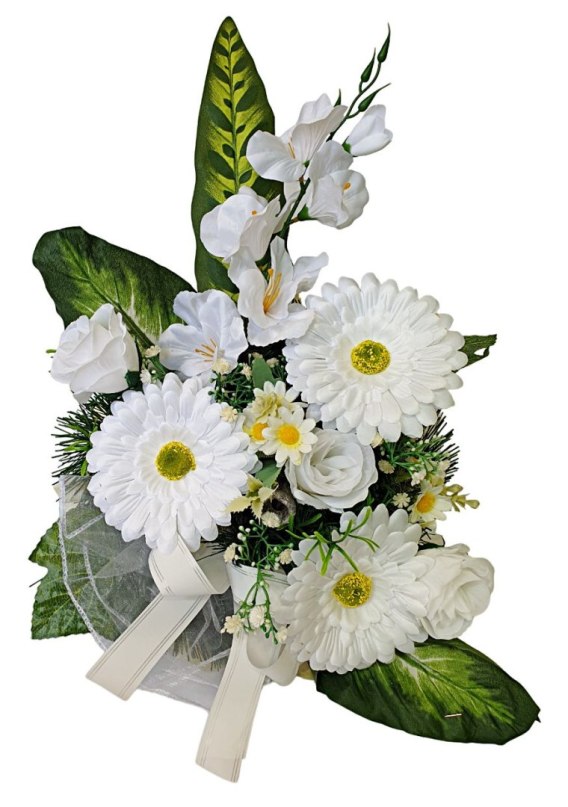 Stroik pięknych sztuchnych kwiatów na cmentarz grób Wszystkich Świętych