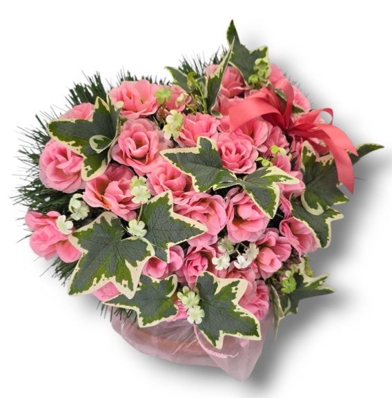 Kompozycje nagrobne z wysokiej jakości sztucznych kwiatów i roślin.