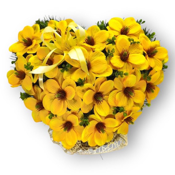 Kompozycje nagrobne z wysokiej jakości sztucznych kwiatów i roślin.