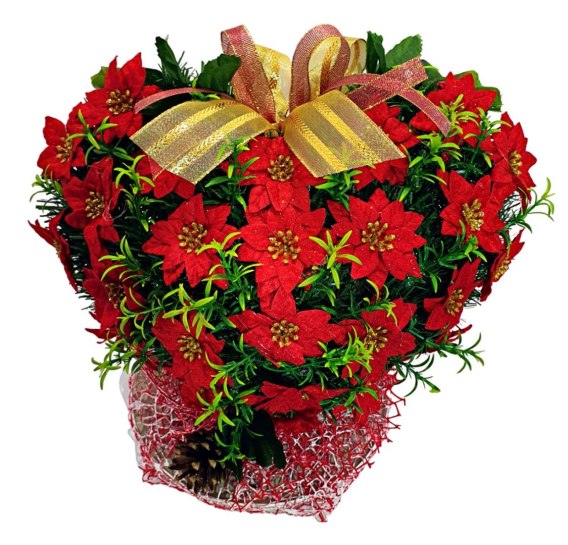 Czerwone serca stanową istotny element Świątecznej aranżacji! Nasze projekty cechują się wyjątkowo gęstym splotem sztucznych gałązek iglastych (PCV), które tworzą estetycznie wyglądające tło dla unikalnej i niespotykanej kompozycji kwiatów oraz ozdób świątecznych. Starannie dobrane detale są niezwykle realistyczne i naturalne, dodając stroikowi autentyczności i podkreślając jego ciepły a zarazem uroczysty charakter.