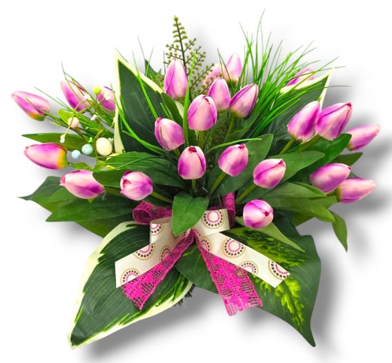 WIOSENNY STROIK NA CMENTARZ KWIATY NA GRÓB POMNIK Z OBCIĄŻENIEM TULIUPANY