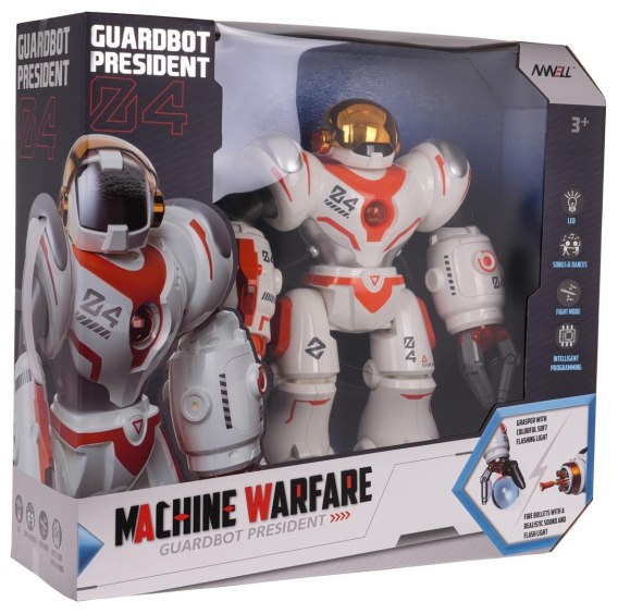Zdalnie sterowany robot z interaktywnymi funkcjami. Zabawka przeznaczona dla dzieci od 3-go roku życia. Robot został wykonany z wysokiej jakości tworzywa sztucznego i jest w pełni bezpieczny dla najmłodszych. Robotem steruje się za pomocą pilota RC z zestawu. Podczas zabawy robot wykonuje ruchy rękami i nogami, a także wydaje odgłosy i ma podświetlone ręce.