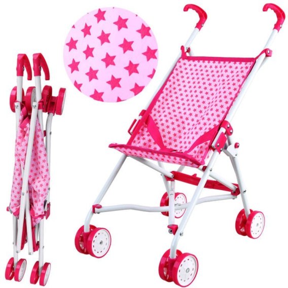 Uroczy, lekki wózek spacerowy dla lalki, misia, przytulanki zapewne przypadnie do gustu każdemu dziecku. Każde dziecko lubi opiekować się swoimi lalkami i misiami i potrzebuje do tego odpowiednie sprzętu, aby komfortowo je zabierać na spacer. Wózek został bardzo ładnie wykonany z dbałością o najdrobniejsze szczegóły, tak aby się go komfortowo prowadziło, a lalka bezpiecznie podróżowała. Konstrukcja jest lekka i bezpieczna. Wózek prowadzi się bardzo komfortowo, jest lekki zwrotny bardzo łatwy w prowadzeniu! Składany wózek dla lalek w uroczym różowym kolorze w gwiazdki, będzie pasował do każdej stylizacji. Lekki i stabilny wózeczek to idealne rozwiązanie!