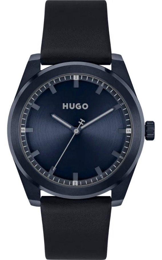 Hugo Bright to więcej niż zegarek. To wyraz Twojej klasy, pewności siebie i gotowości, by zawsze wyglądać najlepiej. Bo prawdziwy mężczyzna nie potrzebuje wiele - wystarczy mu doskonały czasomierz, który mówi wszystko za niego. Matowy, granatowy odcień koperty perfekcyjnie współgra z satynową tarczą, tworząc harmonijną, ale męską całość. Indeksy i wskazówki są minimalistyczne, ale wystarczająco wyraziste, by od razu przyciągnąć wzrok. Całość jest subtelna ale z pazurem - idealny dla mężczyzny, który ceni sobie styl bez przesadnych ozdobników. To model, który pasuje do wszystkiego - od garnituru, przez smart casual, aż po codzienne zestawienia.