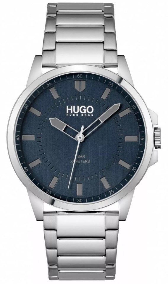 Hugo First 1530186 to zegarek, który przemawia elegancją i siłą minimalizmu - granatowa tarcza przyciąga wzrok głębią, a srebrne detale dodają mu wyrafinowanego charakteru. Stalowa bransoleta podkreśla męską pewność siebie, łącząc solidność z doskonałym stylem. To czasomierz dla tych, którzy chcą wyróżniać się klasą bez zbędnych słów.