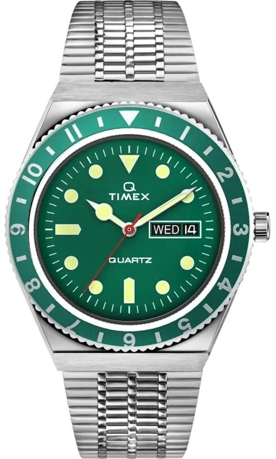 Męski model Reissue od TIMEX to elegancki zegarek analogowy z efektowną zieloną tarczą, zamkniętą w kopercie o średnicy 38 mm i grubości 12 mm. Zegarek został wyposażony w praktyczny datownik oraz wodoodporność do 50 metrów, więc sprawdzi się zarówno na co dzień, jak i w bardziej wymagających warunkach. Szkło mineralne z wypukłym profilem dodaje charakteru i skutecznie chroni przed zarysowaniami. Unikatowa bransoleta ze stali nierdzewnej zapewnia pewne trzymanie na nadgarstku, a geometryczny kształt koperty podkreślają jego męski charakter. Całość dopełniają fluorescencyjne wskazówki i indeksy gwarantują czytelność w każdych warunkach. Dostarczany w eleganckim, firmowym pudełku Timex - gotowy na prezent, ale też gotowy do działania. To zegarek, który łączy styl vintage z nowoczesną niezawodnością, od marki, która od 1854 roku wie, jak mierzyć czas z klasą.